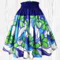 ハワイアンファブリック柄:ランダムなウェーブ調にプルメリアのプリント。ファブリックとバランスの良いロイヤルブルーをウエストに配置したお洒落な仕様。他にはないオリジナルのパウスカート。国内自社縫製。返品交換不可。