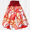 ハワイアンファブリック柄:ランダムなウェーブ調にプルメリアのプリント。ファブリックと同系のワインレッドをウエストに配置したお洒落な仕様。他にはないオリジナルのパウスカート。国内自社縫製。返品交換不可。