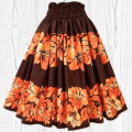 ハワイアンファブリック柄:ブラウン地にシルエット調のハワイアン柄。グラデーション風の「ネオンオレンジ」のカラー。ウエスト無地カラー:ブラウン。切替しがオシャレなオリジナルのパウスカート。国内自社縫製。返品交換不可。