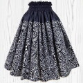 ハワイアンファブリック柄:ブラック系にカヒコ調のタパとホヌ柄。ウエスト無地カラー:ムーンストーン(ダークグレー)。切替しがオシャレなオリジナルのパウスカート。国内自社縫製。返品交換不可。