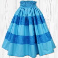 ハワイアンファブリック柄:人気のモンステラ地模様。明るいターコイズカラー(シアン)を交互に配色したボーダー仕様。オリジナルの「ロカヒパウ」のボーダーバージョンのパウスカート。国内自社縫製。返品交換不可。