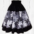 ハワイアンファブリック柄:タパ・カヒコ模様の生地にホヌ柄のプリント。シックな黒を裾とウエストに配置したボーダー仕様。他にはないオリジナルのパウスカート。国内自社縫製。返品交換不可。