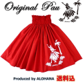 アロハナ完全オリジナルデザインのフラガールをワンポイントにプリントしたお洒落なパウスカート。こちらはブロードの「レッド」をベースに、白のプリント。お洒落なフラダンススカート。ほぼ1点物の為、ゴムや丈は記載の通りになります。アロハナオリジナル商品。国内自社縫製。送料込の価格設定です。