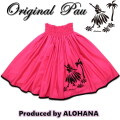 アロハナ完全オリジナルデザインのフラガールをワンポイントにプリントしたお洒落なパウスカート。こちらはブロードの「コーラル」をベースに、黒のプリントに合う「黒バイアス風」を裾にアレンジしています。ブラックカラーが全体を引き締めて、キュートなプリントも大人っぽく仕上がっています。ほぼ1点物の為、ゴムや丈は記載の通りになります。アロハナオリジナル商品。国内自社縫製。
