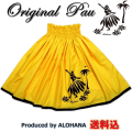 アロハナ完全オリジナルデザインのフラガールをワンポイントにプリントしたお洒落なパウスカート。こちらはブロードの「イエロー」をベースに、黒のプリントに合う「黒バイアス風」を裾にアレンジしています。ブラックカラーが全体を引き締めて、キュートなプリントも大人っぽく仕上がっています。ほぼ1点物の為、ゴムや丈は記載の通りになります。アロハナオリジナル商品。国内自社縫製。送料込の価格設定です。