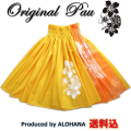 アロハナ完全オリジナルデザインのプルメリアをワンポイントにプリントしたお洒落なパウスカート。こちらはブロードの「イエロー」をベースに、白のプリント。一部差し色風にマンゴーハワイアン柄を縦にアレンジ。お洒落なフラダンススカート。ほぼ1点物の為、ゴムや丈は記載の通りになります。アロハナオリジナル商品。国内自社縫製。送料込の価格設定です。