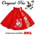 アロハナ完全オリジナルデザインのフラガールをワンポイントにプリントしたブロード生地にハワイアンファブリックをアレンジしたお洒落なパウスカート。こちらはレッド生地にプルメリア柄のハワイアンファブリックをアレンジしています。ほぼ1点物の為、ゴムや丈は記載の通りになります。アロハナオリジナル商品。国内自社縫製。送料込の価格設定です。キャンセル、返品交換不可。